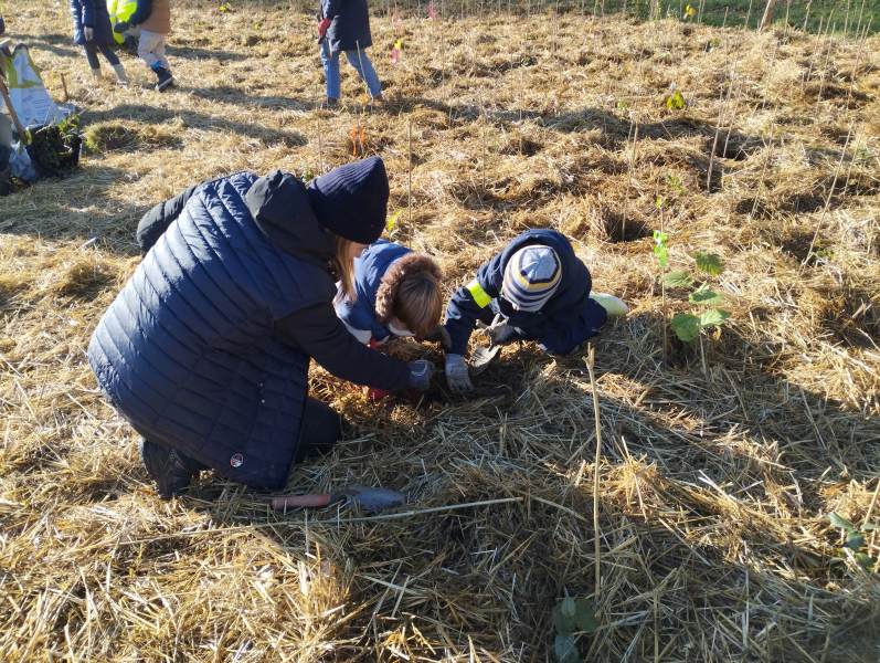 Avant toute chose, nous nous sommes équipés de gants, et après avoir constitué des binômes, nous nous sommes répartis sur le terrain avec les adultes qui nous aidaient. J’en profite pour les remercier! Jim, le responsable de l’association, nous a donné des plants en nous expliquant le nom des arbres : chêne, sureau, bouleau, noisetier…