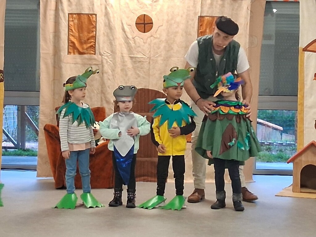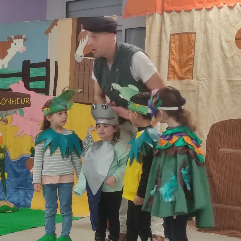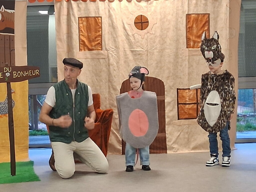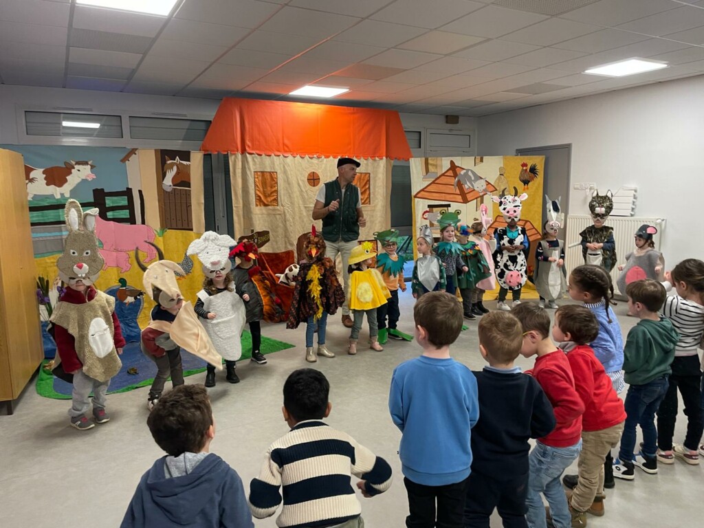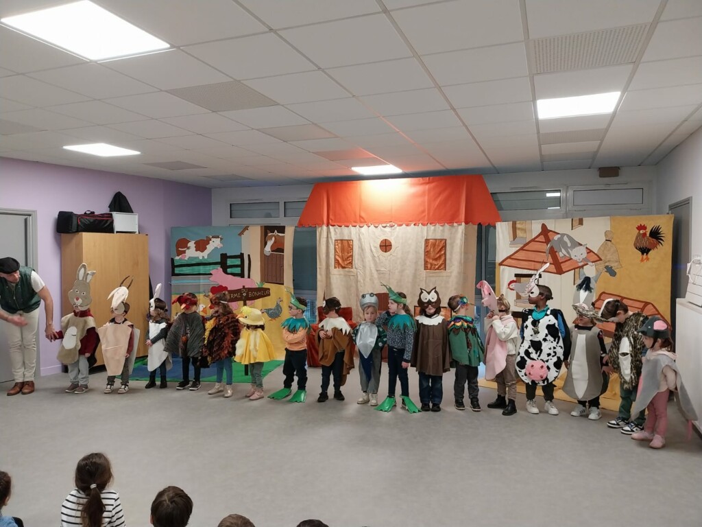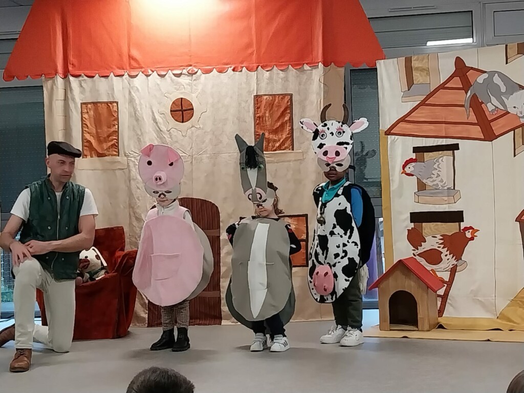 Mardi, les enfants de maternelle ont eu la chance de participer au spectacle proposé par la compagnie « Acteurs en herbe », Toupi, à la ferme du bonheur.