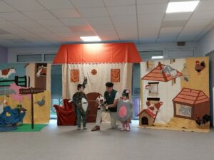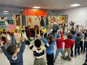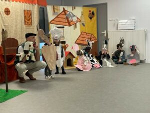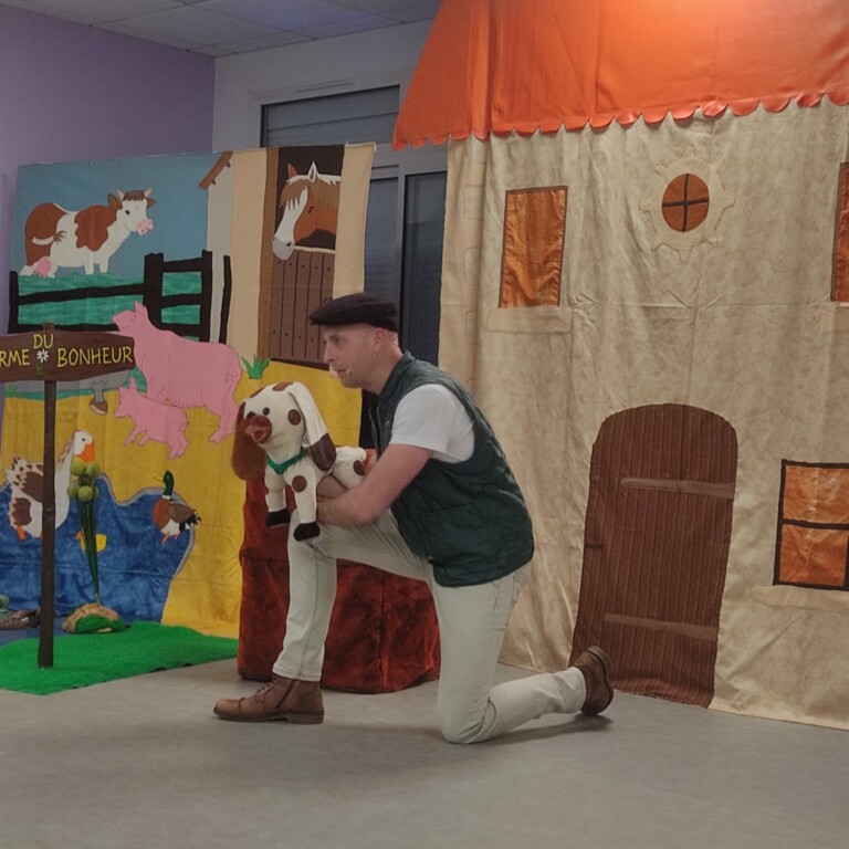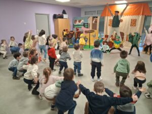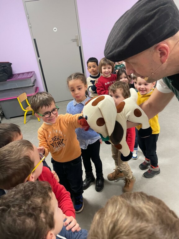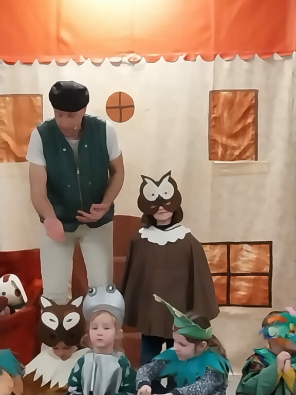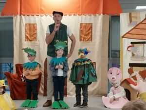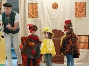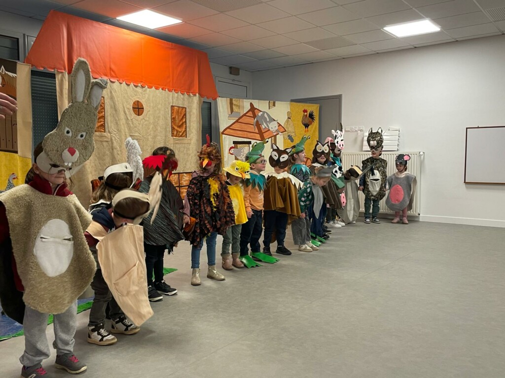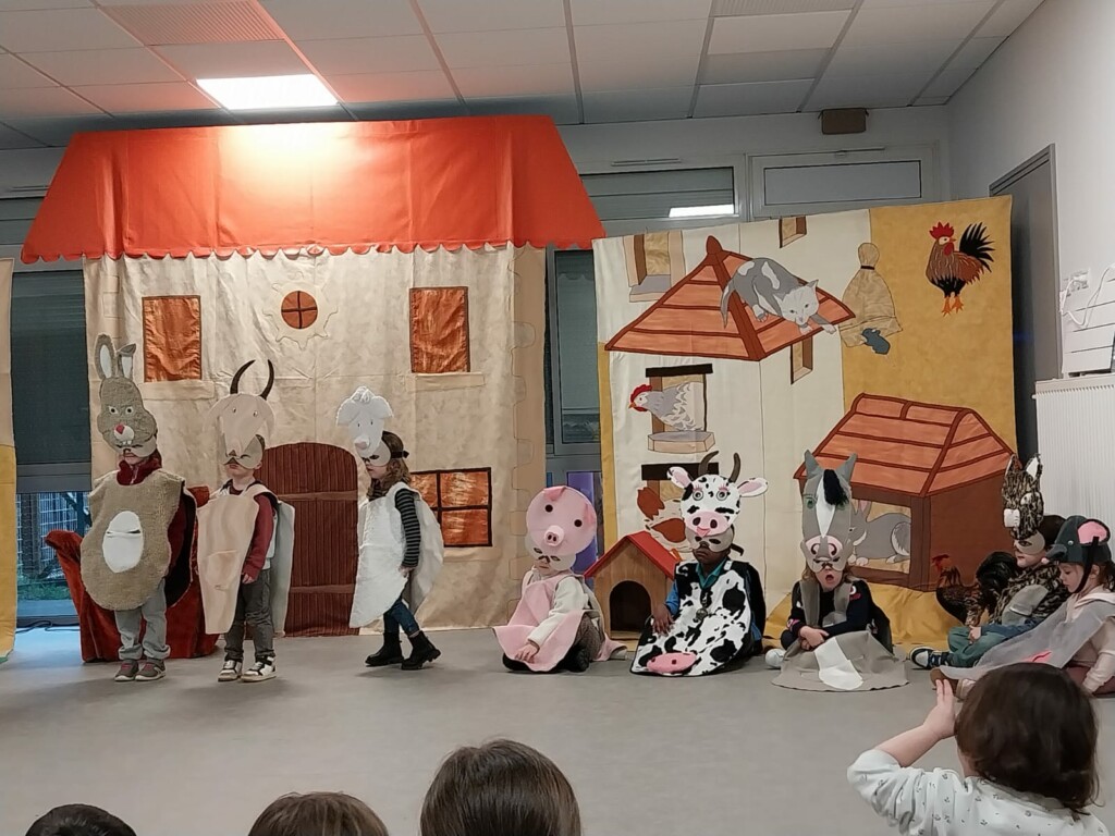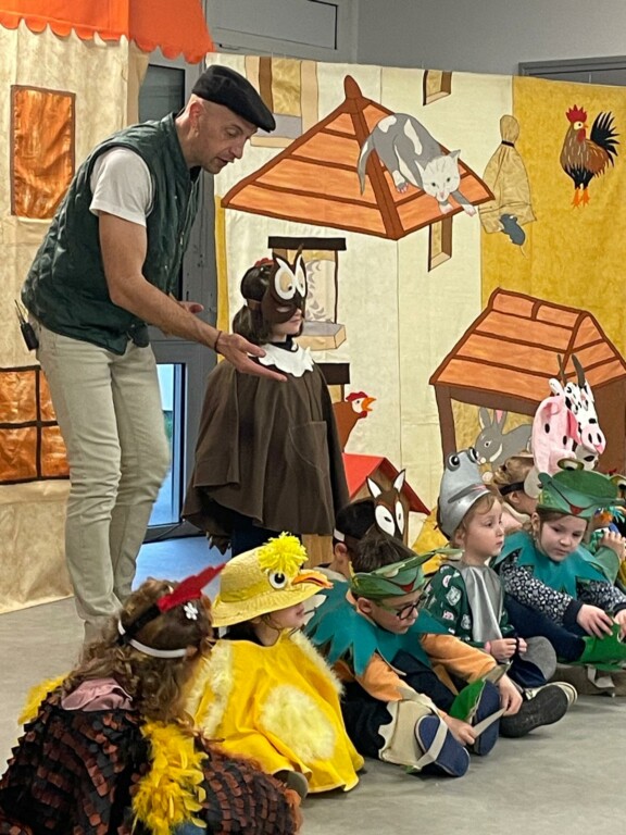 Mardi, les enfants de maternelle ont eu la chance de participer au spectacle proposé par la compagnie « Acteurs en herbe », Toupi, à la ferme du bonheur.