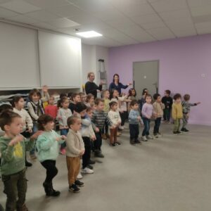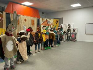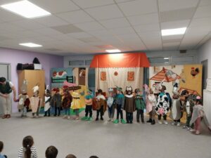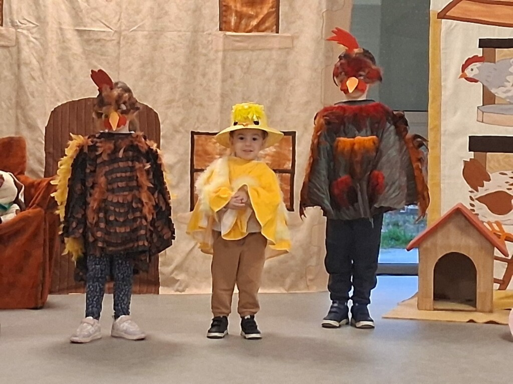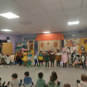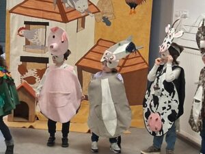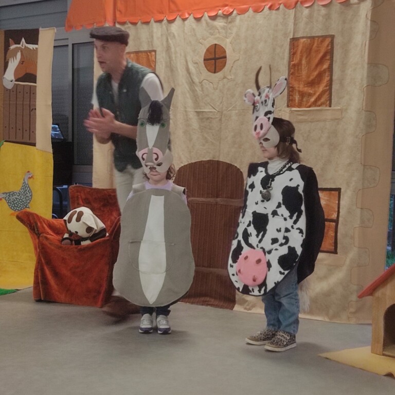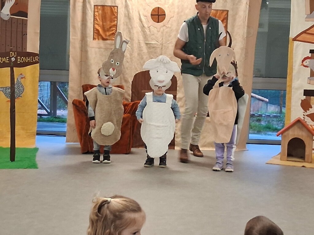 A travers des costumes, de la danse et une participation active des enfants, nous avons beaucoup appris sur les animaux de la ferme, leurs petits et  leurs cris.