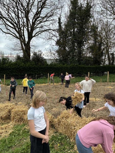 Jeudi 5 et Vendredi 6 mars, les élèves du cycle 3 ont apporté leur contribution au projet « Mini Big Forest » en désherbant et en appliquant une nouvelle couche de paille fraîche… Ils se sont montrés enthousiastes et ont bien travaillé pendant 2 fois 1 heure… Quelques élèves ont également entretenu le parterre de la cour élémentaire en enlevant les mauvaises herbes et en rajoutant des copeaux de bois. Bravo aux petits jardiniers en herbe !