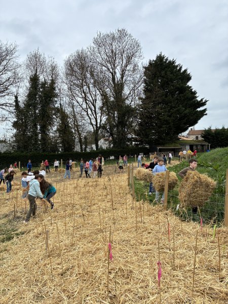 Jeudi 5 et Vendredi 6 mars, les élèves du cycle 3 ont apporté leur contribution au projet « Mini Big Forest » en désherbant et en appliquant une nouvelle couche de paille fraîche… Ils se sont montrés enthousiastes et ont bien travaillé pendant 2 fois 1 heure… Quelques élèves ont également entretenu le parterre de la cour élémentaire en enlevant les mauvaises herbes et en rajoutant des copeaux de bois. Bravo aux petits jardiniers en herbe !
