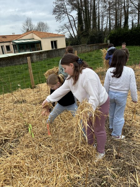 Jeudi 5 et Vendredi 6 mars, les élèves du cycle 3 ont apporté leur contribution au projet « Mini Big Forest » en désherbant et en appliquant une nouvelle couche de paille fraîche… Ils se sont montrés enthousiastes et ont bien travaillé pendant 2 fois 1 heure… Quelques élèves ont également entretenu le parterre de la cour élémentaire en enlevant les mauvaises herbes et en rajoutant des copeaux de bois. Bravo aux petits jardiniers en herbe !