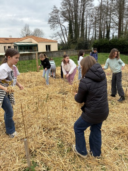 Jeudi 5 et Vendredi 6 mars, les élèves du cycle 3 ont apporté leur contribution au projet « Mini Big Forest » en désherbant et en appliquant une nouvelle couche de paille fraîche… Ils se sont montrés enthousiastes et ont bien travaillé pendant 2 fois 1 heure… Quelques élèves ont également entretenu le parterre de la cour élémentaire en enlevant les mauvaises herbes et en rajoutant des copeaux de bois. Bravo aux petits jardiniers en herbe !