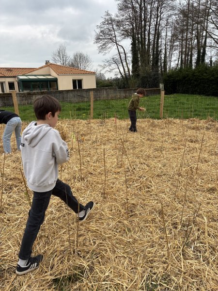 Jeudi 5 et Vendredi 6 mars, les élèves du cycle 3 ont apporté leur contribution au projet « Mini Big Forest » en désherbant et en appliquant une nouvelle couche de paille fraîche… Ils se sont montrés enthousiastes et ont bien travaillé pendant 2 fois 1 heure… Quelques élèves ont également entretenu le parterre de la cour élémentaire en enlevant les mauvaises herbes et en rajoutant des copeaux de bois. Bravo aux petits jardiniers en herbe !