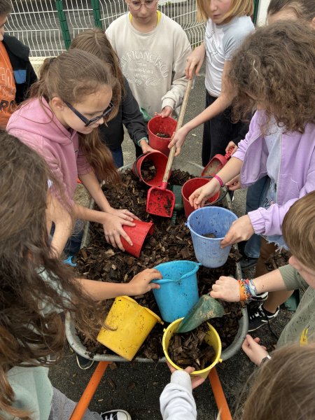 Jeudi 5 et Vendredi 6 mars, les élèves du cycle 3 ont apporté leur contribution au projet « Mini Big Forest » en désherbant et en appliquant une nouvelle couche de paille fraîche… Ils se sont montrés enthousiastes et ont bien travaillé pendant 2 fois 1 heure… Quelques élèves ont également entretenu le parterre de la cour élémentaire en enlevant les mauvaises herbes et en rajoutant des copeaux de bois. Bravo aux petits jardiniers en herbe !
